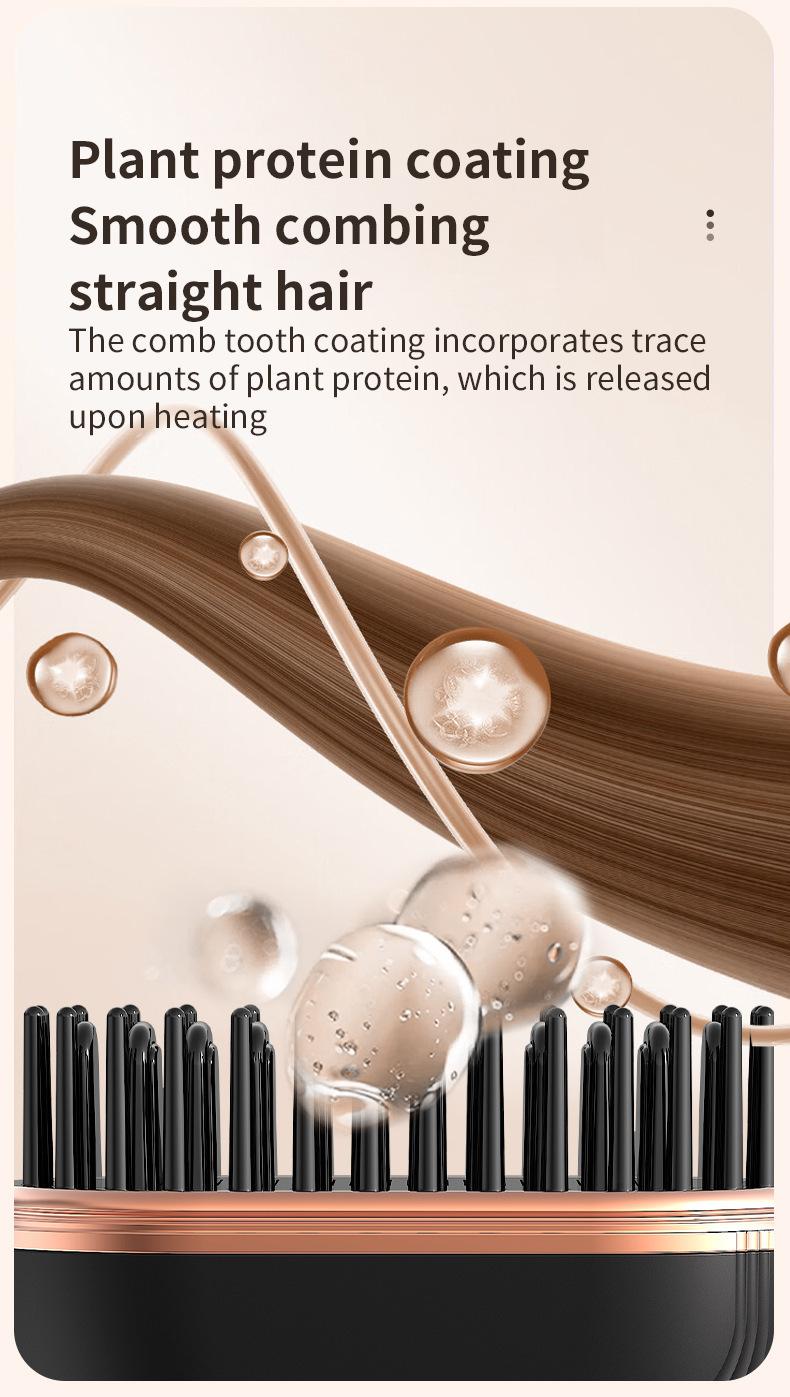 Compact Wireless Straightening Comb Portable USB Charging Travel Essential,Copper Heating Plates for Smooth Styling,Portable Hair Styler Fashionable Modern Design Mini Hair Straightener Brush Heated Comb